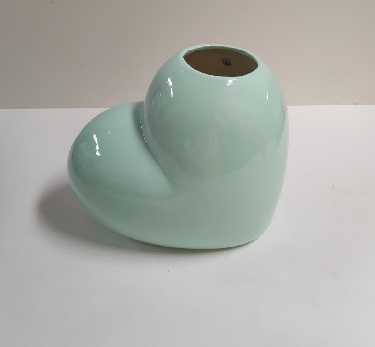 VASO CERAMICA CORAÇÃO VERDE 24x15cm