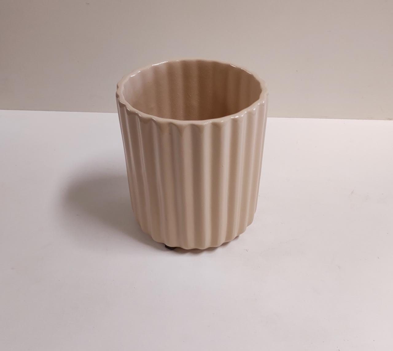 VASO CERAMICA PLISSADO PEQUENO BEGE 13X12