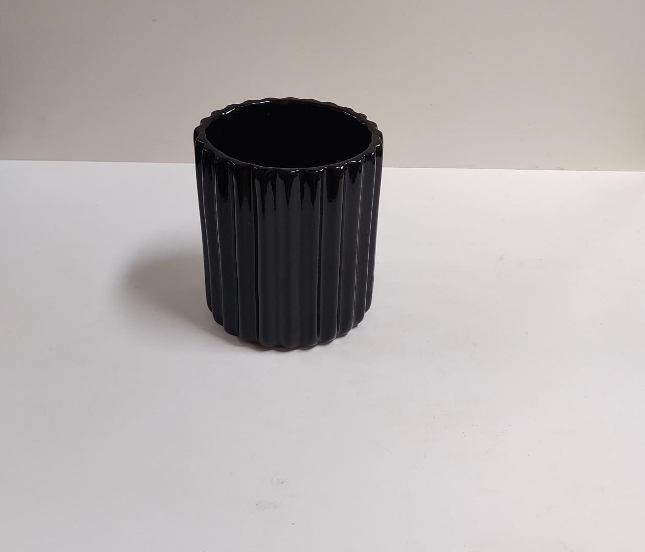 VASO CERAMICA PLISSADO PEQUENO PRETO 13 X 12